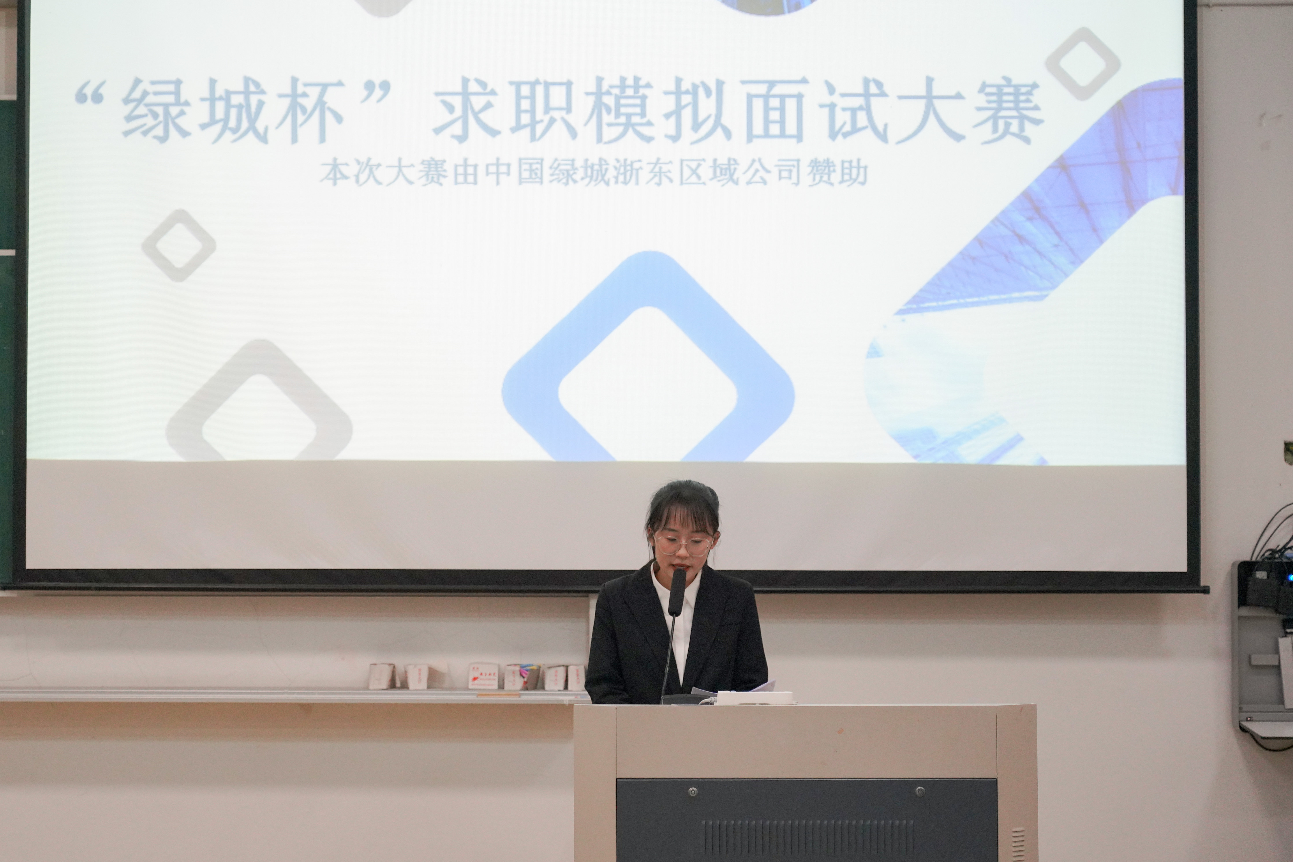 为加强公司学子求职面试的技能,全面促进员工在求职过程中的综合素质能力,12月7日,由yl23411永利官网登录招生与就业指导处主办,yl23411永利官网登录职业发展中心承办,绿城中国浙东区域公司全力支持的yl23411永利官网登录首届“绿城杯”求职模拟面试大赛决赛在SB104举行。绿城中国浙东区域公司人力资源总监桑春晓女士、人力资源经理史锋先生、yl23411永利官网登录招生与就业指导处副处长陈美芳老师,公司党委副书记兼纪委书记吴琼老师、yl23411永利官网登录学工办辅导员赵昌志老师以及决赛选手和部分员工代表参加本次活动。