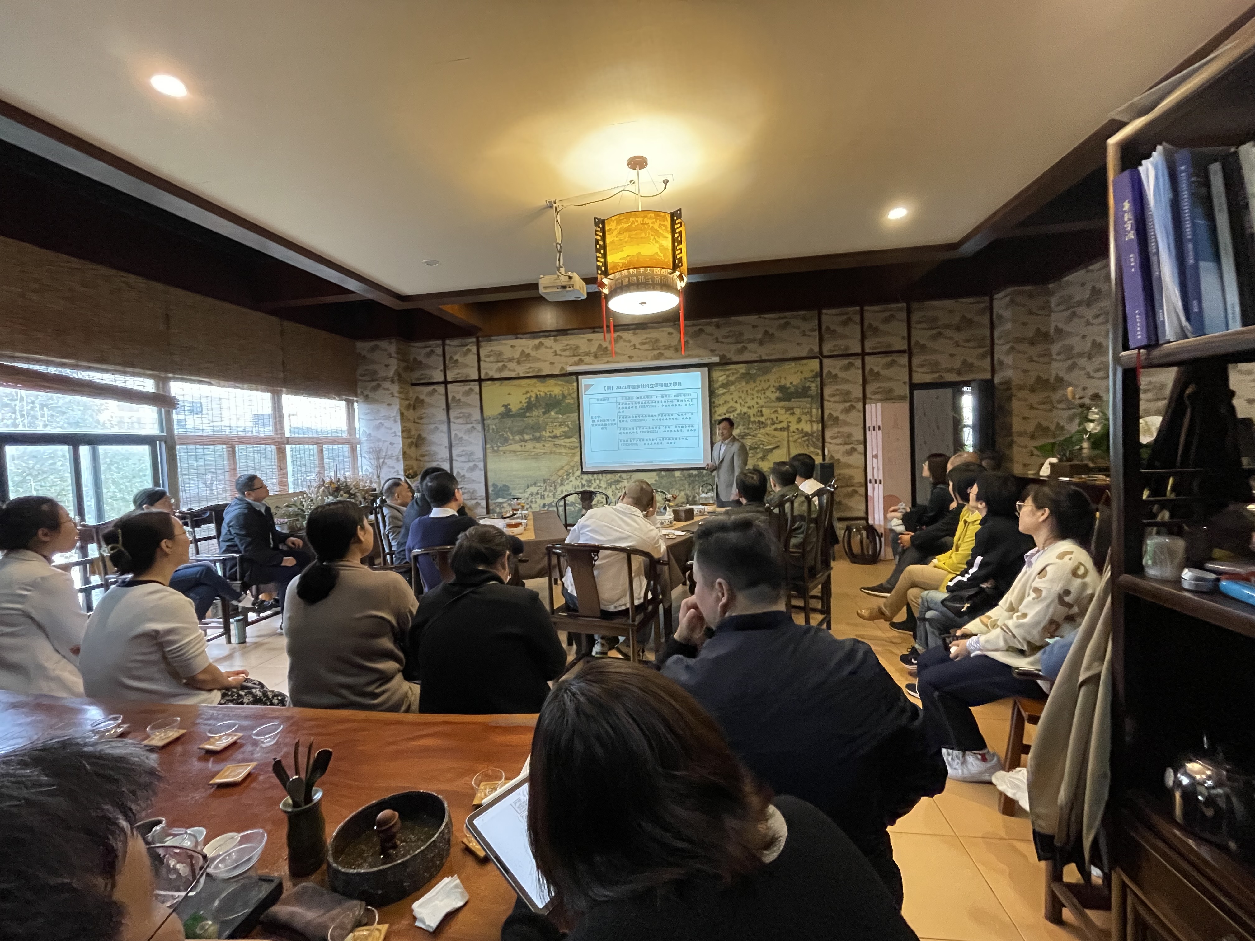11月4日中午,yl23411永利官网登录在大益爱心茶室举行第四十九期主题为“建立‘自信’与‘他信’:科研项目申报中的一点感悟”的学术沙龙活动,本次沙龙邀请丛海彬教授主讲。丛教授从自身作为青年教师申请课题的经验出发,讲述课题申请过程中如何建立“自信”与“他信”,为有意申报高层次科研课题、申报经验不足的教师提供借鉴。yl23411永利官网登录共有30多位老师参加本次沙龙活动。