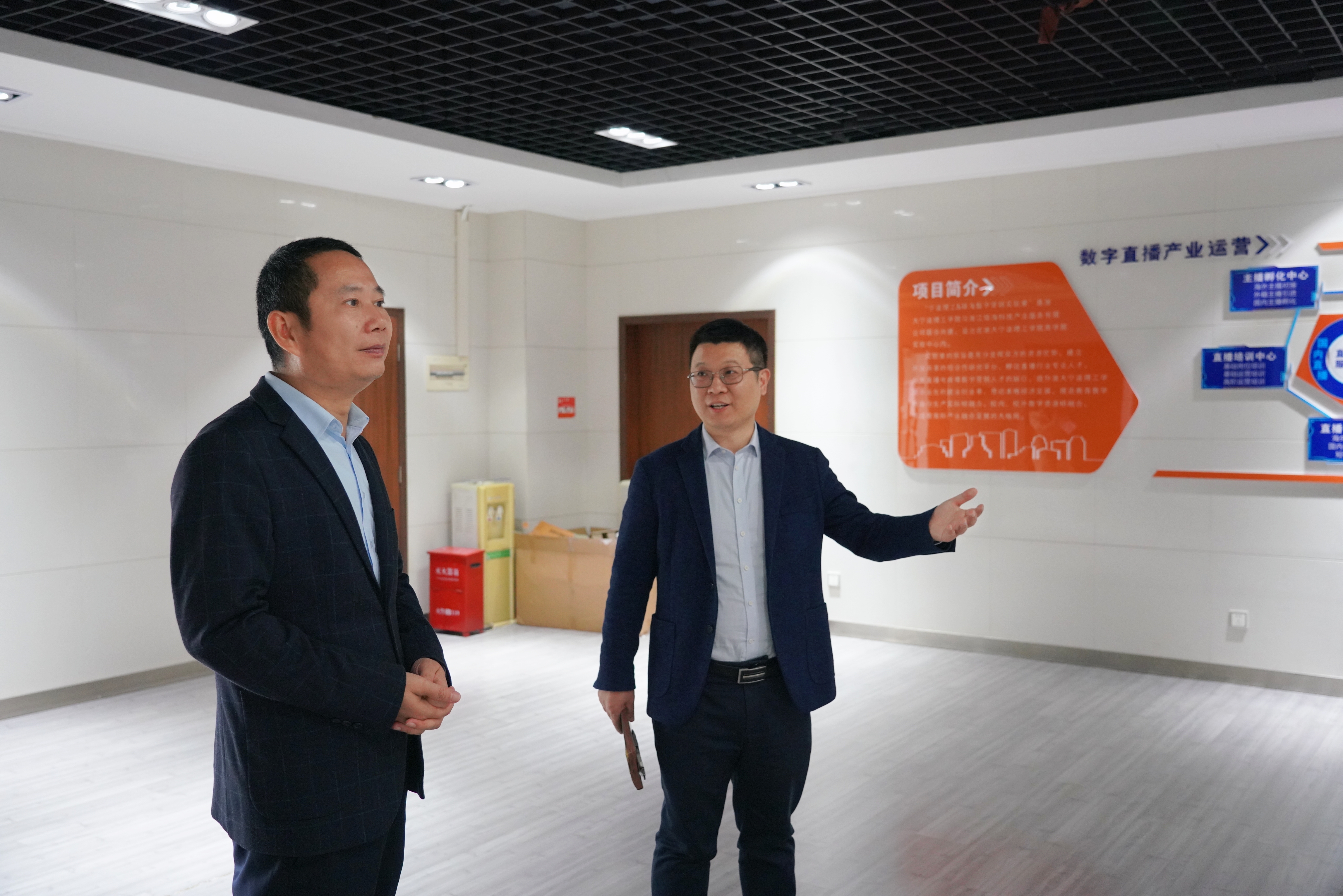 座谈交流结束后,王海艇总经理和马翔副经理一行参观宁波市金融研究院、丝绸之路研究院、数字贸易与数字营销产业公司。