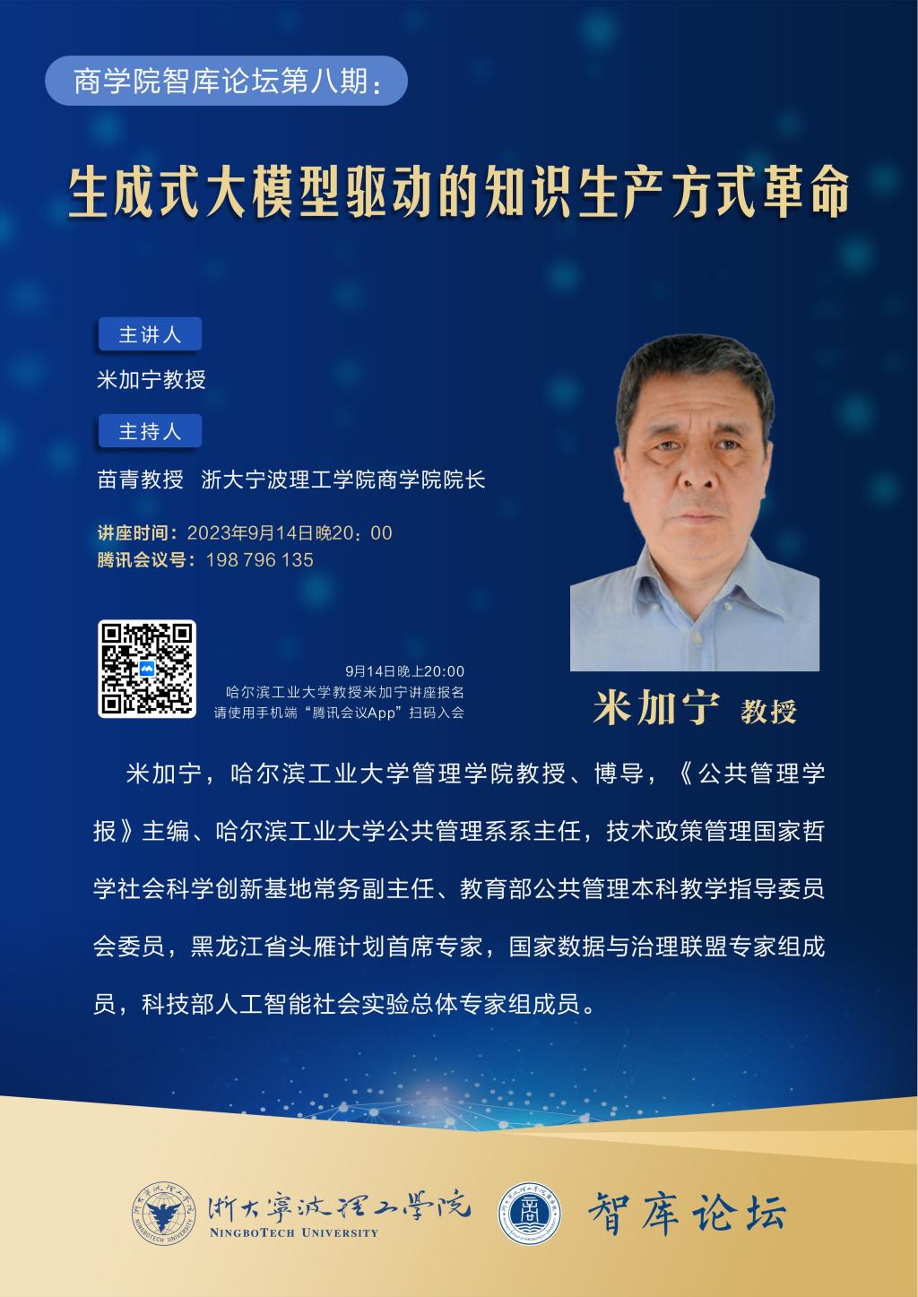 米加宁,哈尔滨工业大学管理公司教授、博导,《公共管理学报》主编、哈尔滨工业大学公共管理系系主任,技术政策管理国家哲学社会科学创新基地常务副主任、教育部公共管理本科教学指导委员会委员,黑龙江省头雁计划首席专家,国家数据与治理联盟专家组成员,科技部人工智能社会实验总体专家组成员。