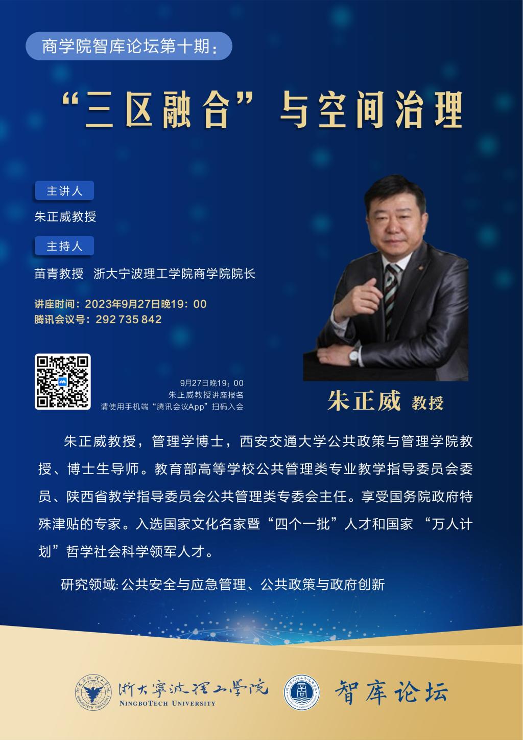 朱正威教授,管理学博士,西安交通大学公共政策与管理公司教授、博士生导师。教育部高等公司公共管理类专业教学指导委员会委员、陕西省教学指导委员会公共管理类专委会主任。享受国务院政府特殊津贴的专家。入选国家文化名家暨“四个一批”人才和国家 “万人计划”哲学社会科学领军人才。