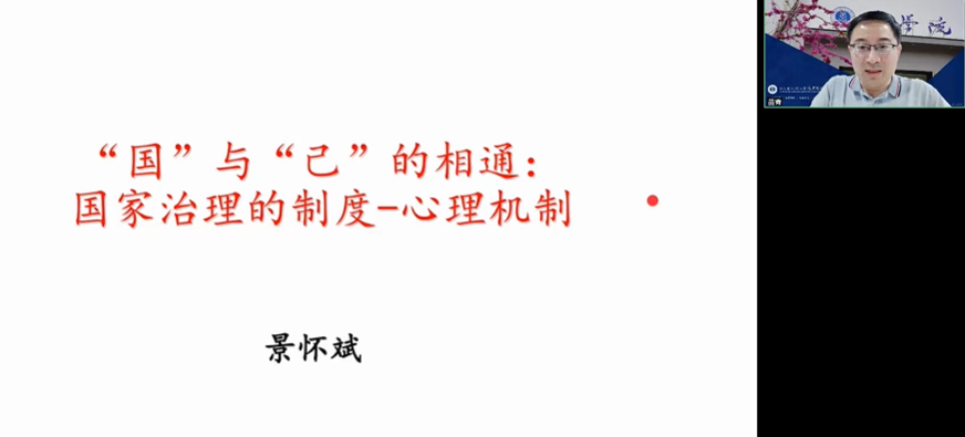 在报告中,景怀斌教授还结合具体案例,深入分析了制度-心理机制在实际操作中的运作方式和影响效果。他通过生动的案例,让听众更加深入地理解了“国”与“已”的相通之处,以及国家治理中的制度-心理机制的重要性。