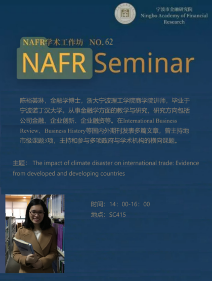 2024年10月17日下午,金融学术工作坊在SC414会议室举办学术工作坊活动。在这次活动中,陈裕荟琳博士发表了题为“气候灾难对国际贸易的影响:发达国家与发展中国家的比较研究”的演讲。陈博士通过对比分析,深入探讨了气候灾难风险对不同国家,特别是发达国家和发展中国家的影响。陈博士的分析为理解全球经济中的气候因素提供了新的视角,强调了气候灾难对国际贸易流动格局的重塑作用,以及对中小企业和低收入国家可能带来的挑战。